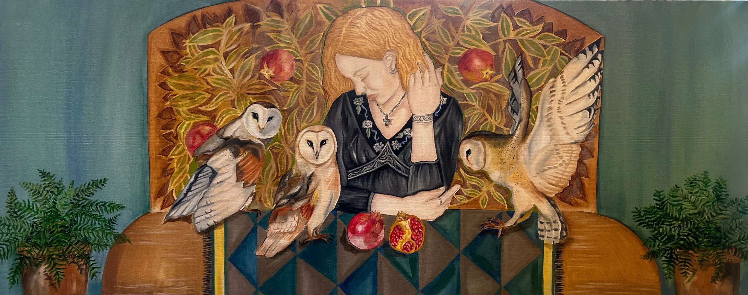 Woman With A Parrot Figure Replica, 2023, Oil on Canvas, 18 x 24 inches