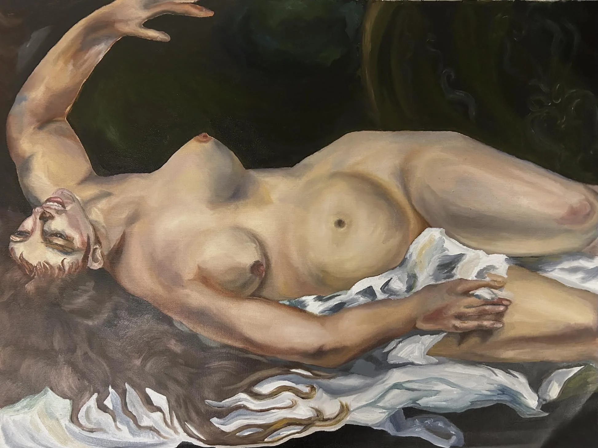 I will just lay here, 2023, oil on canvas, 18 x 24
