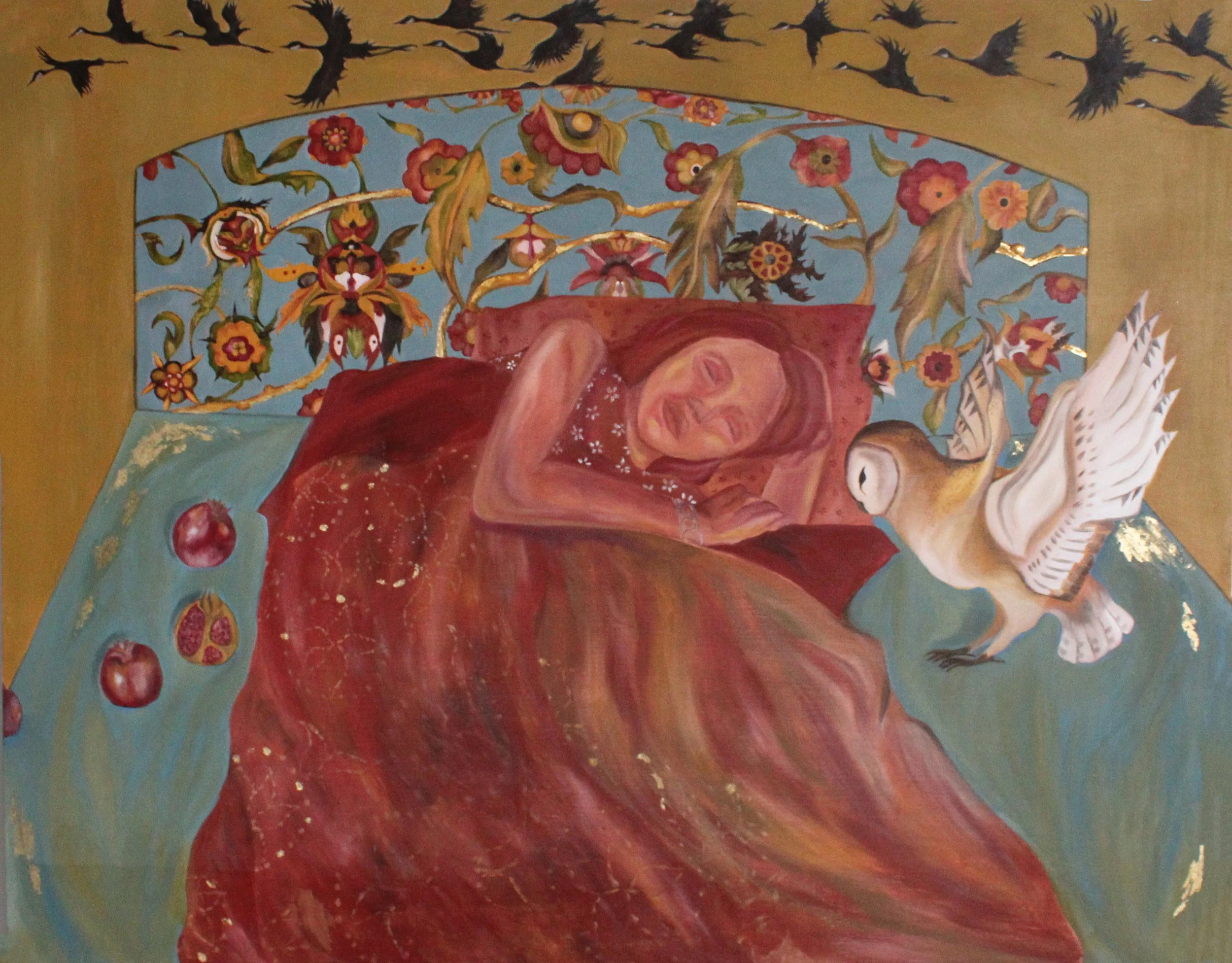 Waiting, 2025, oil on canvas with gold leaf detail, 3 x 4 ft